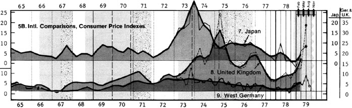 This is one of 20 regular and a dozen periodic chart panels taken as a sample from the final issue -- December 1979 -- of the initial series of IEA Pocket Charts. The compact and analytically advanced economic charts feature the following analytical features: