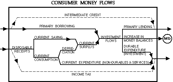 The Integrated Dynamic Money Flow (IDMF) analytical model differs conceptually from both the Flow-of-Funds accounts and Keynesian theory in that it uses a genuine money-flow perspective. Thus, for each transaction, instead of asking only "How does it affect the two parties' static individual balance