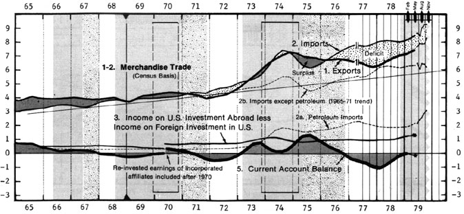 This is one of 20 regular and a dozen periodic chart panels taken as a sample from the final issue -- December 1979 -- of the initial series of IEA Pocket Charts. The compact and analytically advanced economic charts feature the following analytical features: