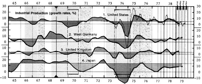 This is one of 20 regular and a dozen periodic chart panels taken as a sample from the final issue -- December 1979 -- of the initial series of IEA Pocket Charts. The compact and analytically advanced economic charts feature the following analytical features: