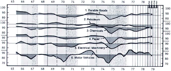 This is one of 20 regular and a dozen periodic chart panels taken as a sample from the final issue -- December 1979 -- of the initial series of IEA Pocket Charts. The compact and analytically advanced economic charts feature the following analytical features: